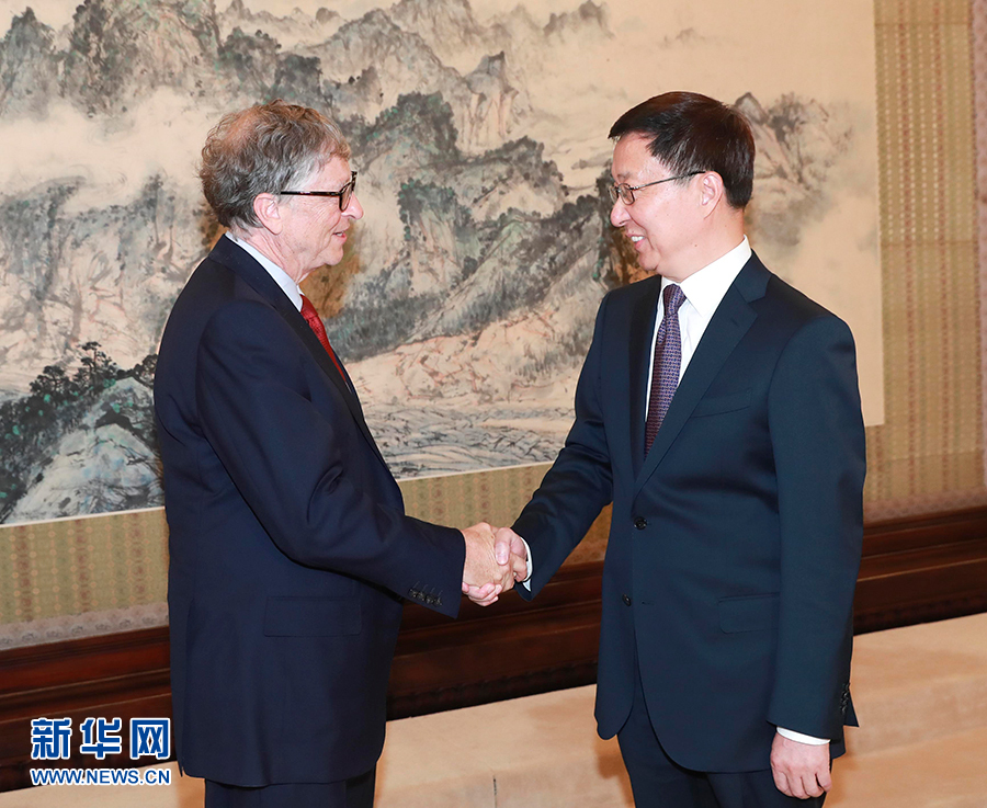11月8日,中共中央政治局常委、國務院副總理韓正在北京中南海紫光閣會見美國泰拉能源公司董事長、微軟公司創(chuàng)始人比爾·蓋茨。 新華社記者 龐興雷 攝