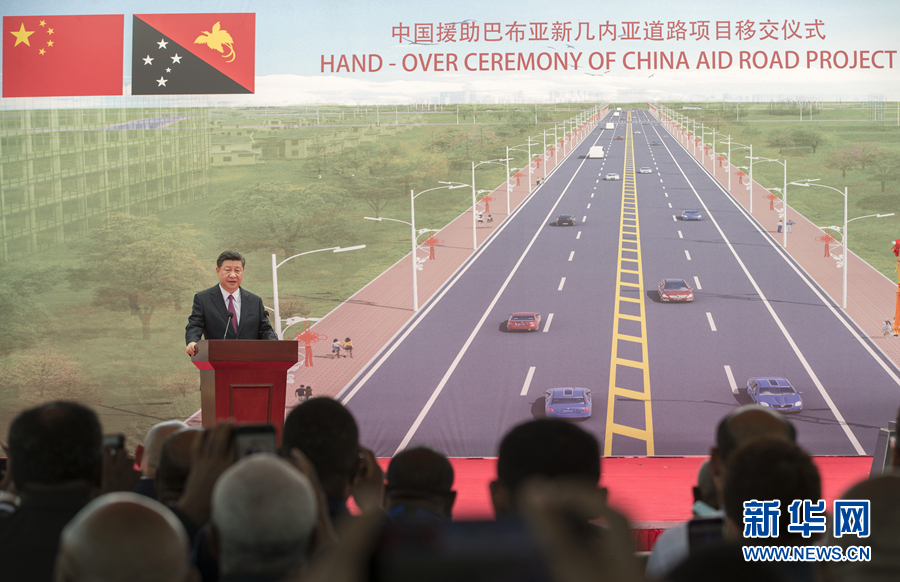 11月16日,國(guó)家主席習(xí)近平在莫爾茲比港和巴布亞新幾內(nèi)亞總理奧尼爾共同出席中國(guó)援建的獨(dú)立大道移交啟用儀式。新華社記者 費(fèi)茂華 攝