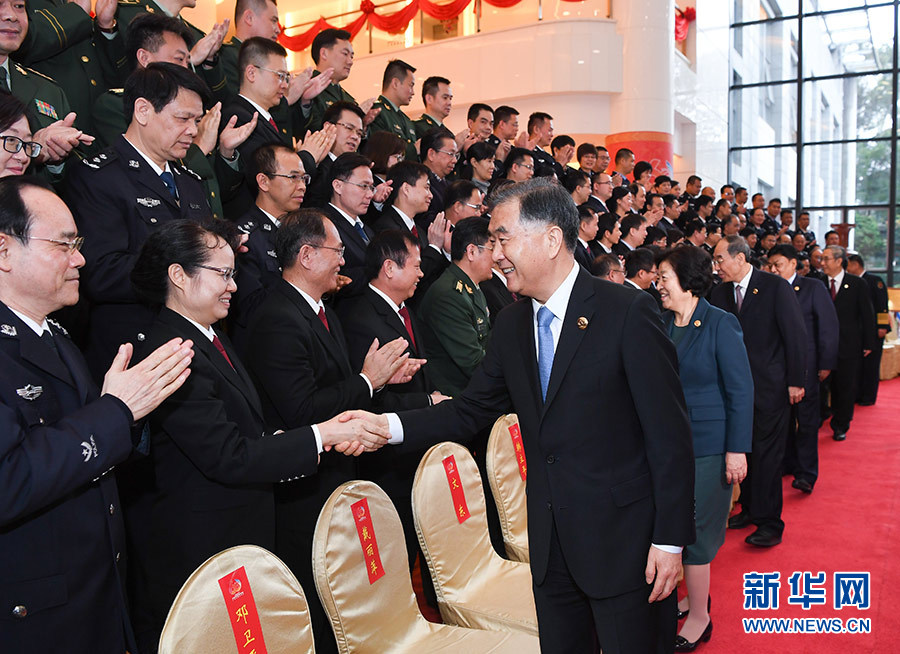 12月9日,中共中央政治局常委、全國政協(xié)主席、中央代表團團長汪洋率代表團部分成員分別赴廣西軍區(qū)、武警廣西總隊慰問,并會見自治區(qū)政法系統(tǒng)代表。這是汪洋慰問廣西軍區(qū)和駐桂部隊官兵代表。 新華社記者 劉彬 攝