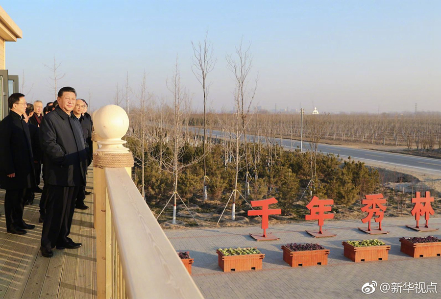 雄安新區(qū)堅(jiān)持生態(tài)優(yōu)先、綠色發(fā)展,率先啟動(dòng)生態(tài)基礎(chǔ)設(shè)施建設(shè)和環(huán)境整治,目前已完成11萬(wàn)畝“千年秀林”建設(shè)。16日下午,習(xí)近平總書(shū)記來(lái)到“千年秀林”大清河片林一區(qū)造林區(qū)域,乘車(chē)穿行林區(qū)察看林木長(zhǎng)勢(shì),登上秀林驛站二層平臺(tái)遠(yuǎn)眺林區(qū)全貌,同當(dāng)?shù)刈o(hù)林員代表親切交流。他說(shuō),藍(lán)天、碧水、綠樹(shù),藍(lán)綠交織,將來(lái)生活的最高標(biāo)準(zhǔn)就是生態(tài)好。雄安新區(qū)過(guò)去有一定的基礎(chǔ),現(xiàn)在搞“千年秀林”,將來(lái)這里一定是最宜居的地方。綠水青山就是金山銀山,雄安新區(qū)就要靠這樣的生態(tài)環(huán)境來(lái)體現(xiàn)價(jià)值、增加吸引力。(記者張曉松、謝環(huán)馳、鞠鵬)?