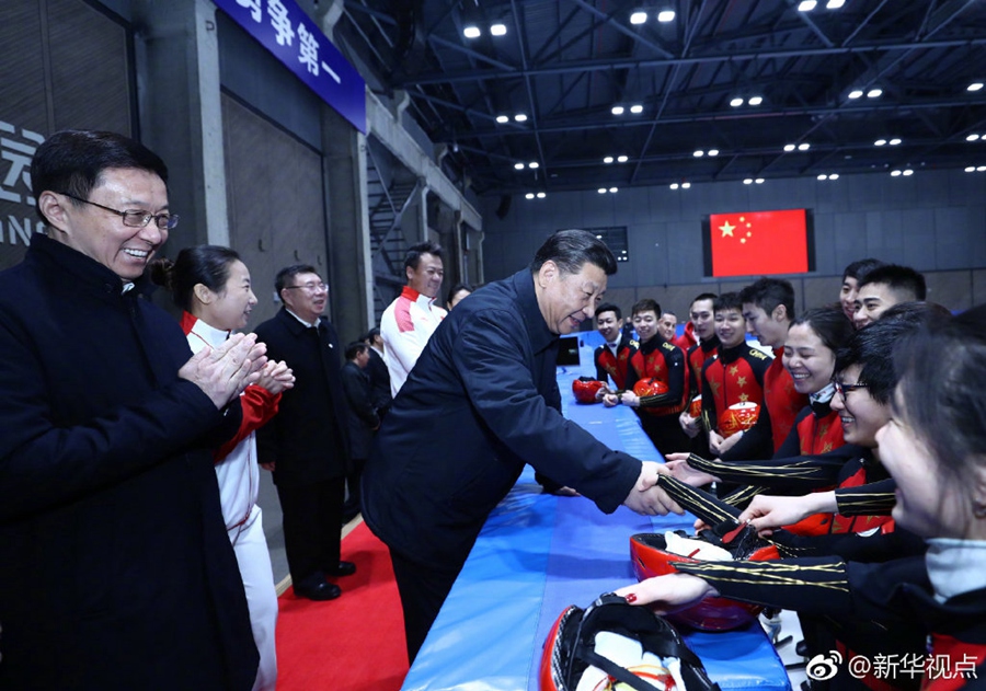 在位于北京石景山首鋼園區(qū)的國家冬季運動訓(xùn)練中心,習(xí)近平先后走進(jìn)速滑館和冰壺館,看望慰問備戰(zhàn)的運動員、教練員?!坝?xùn)練強度大不大?”“從事這項運動多長時間啦?”“生活上有哪些困難?”“國際上哪些競爭對手最強?”總書記問得仔細(xì)。得知運動員們充滿信心,總書記十分欣慰。他勉勵大家說,舉辦北京冬奧會、冬殘奧會,中國冰雪運動將會上一個大臺階。這是百年不遇的歷史機遇,會應(yīng)運而生一批高水平優(yōu)秀運動員。習(xí)近平強調(diào),體育強則國家強,國家強則體育強。通過北京冬奧會把我國冬季冰雪運動發(fā)展起來,這就是我們的希望。(記者張曉松、鞠鵬、謝環(huán)馳、劉彬)?