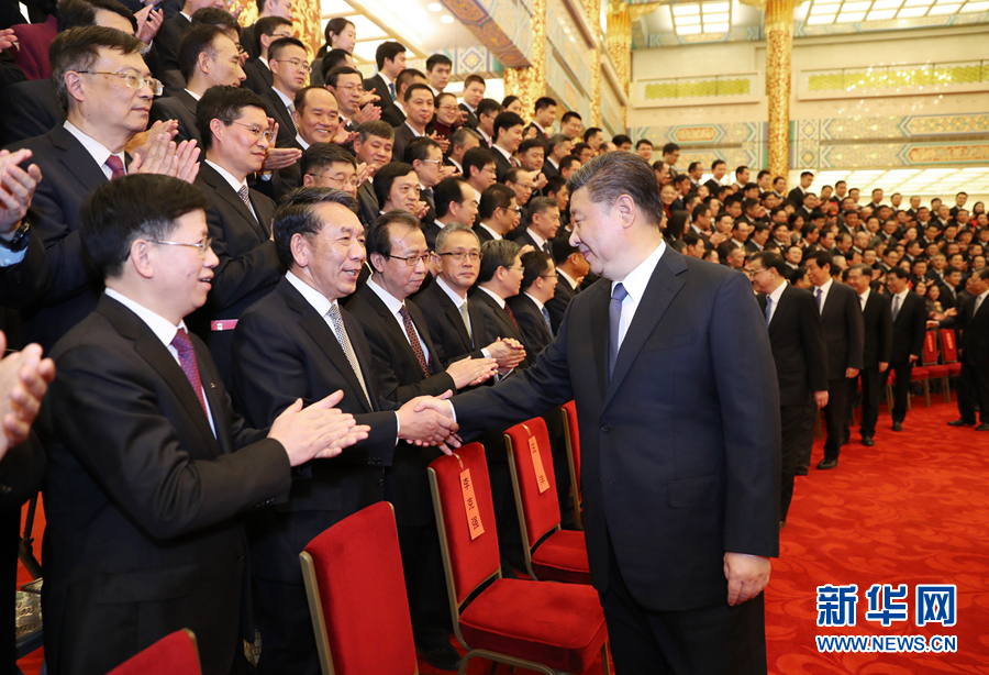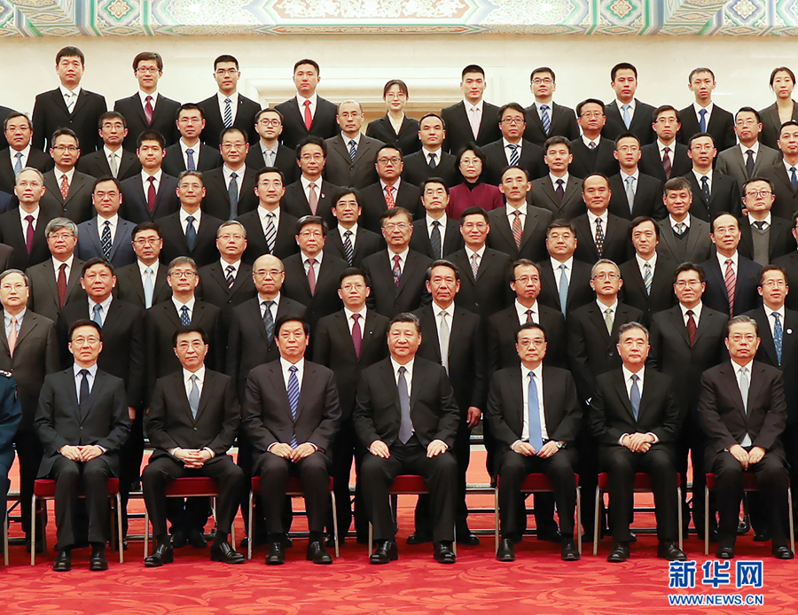 2月20日,黨和國家領(lǐng)導(dǎo)人習(xí)近平、李克強(qiáng)、栗戰(zhàn)書、汪洋、王滬寧、趙樂際、韓正等在北京人民大會(huì)堂會(huì)見探月工程嫦娥四號任務(wù)參研參試人員代表。 新華社記者鞠鵬攝
