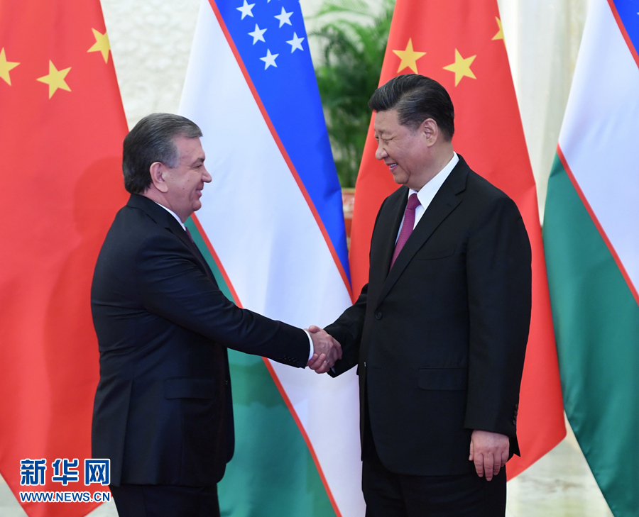 4月25日,國家主席習(xí)近平在北京人民大會(huì)堂會(huì)見烏茲別克斯坦總統(tǒng)米爾濟(jì)約耶夫。 新華社記者 殷博古 攝