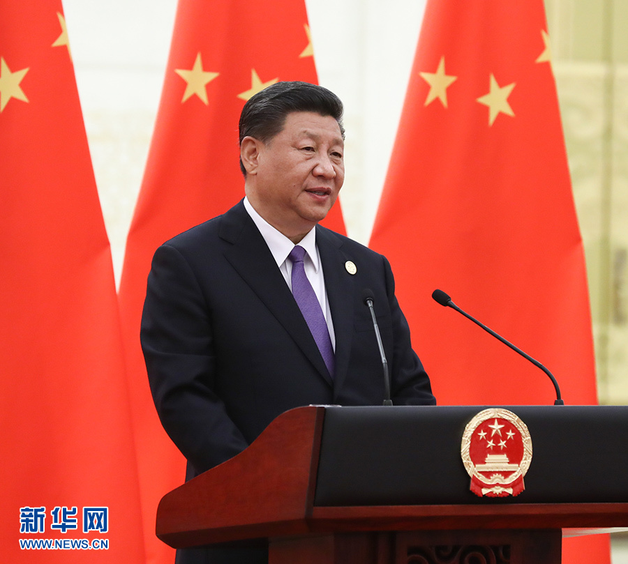5月14日,國家主席習近平和夫人彭麗媛在北京人民大會堂舉行宴會,歡迎出席亞洲文明對話大會的外方領導人夫婦及嘉賓。這是習近平在宴會上發(fā)表致辭。 新華社記者 鞠鵬 攝