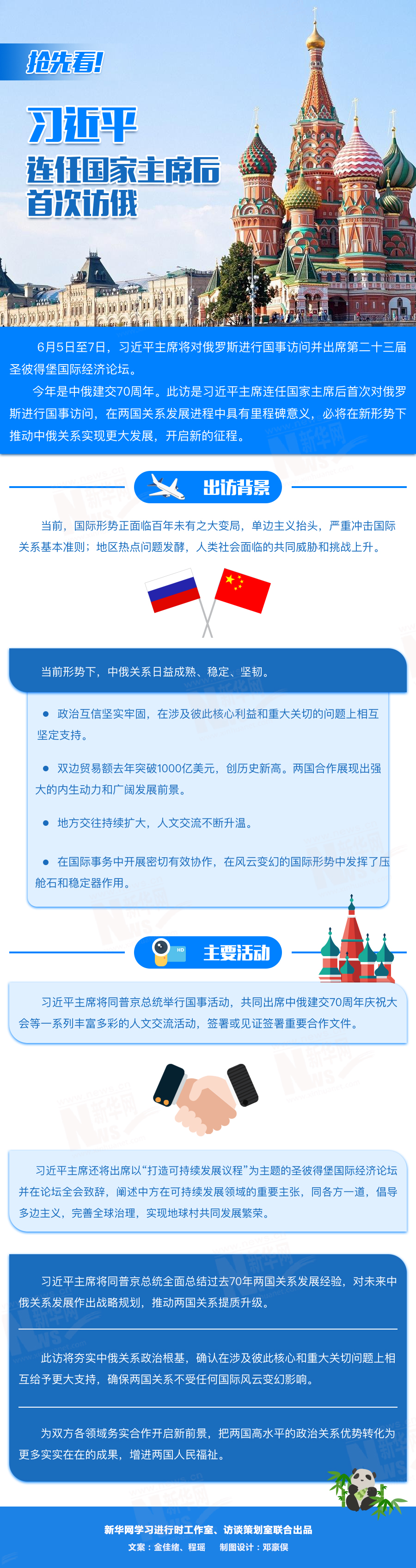 訪問(wèn)期間,習(xí)近平主席還將出席圣彼得堡國(guó)際經(jīng)濟(jì)論壇,在論壇全會(huì)致辭,闡述中方在可持續(xù)發(fā)展領(lǐng)域的重要主張,同各方一道,倡導(dǎo)多邊主義,完善全球治理,實(shí)現(xiàn)地球村共同發(fā)展繁榮。