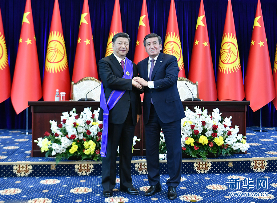 新華社比什凱克6月13日電(記者鄭曉奕 劉暢)國家主席習(xí)近平13日在比什凱克出席儀式,接受吉爾吉斯斯坦總統(tǒng)熱恩別科夫授予“瑪納斯”一級勛章。