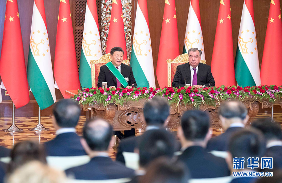 拉赫蒙表示,熱烈歡迎習近平主席再次訪問塔吉克斯坦,感謝中方為亞信第五次峰會成功舉辦作出重要貢獻,祝賀中華人民共和國成立70周年,祝愿友好的中國永遠國泰民安。塔方把深化同中國全面戰(zhàn)略伙伴關系作為外交優(yōu)先方向之一,感謝中方長期以來的支持和幫助,愿在“一帶一路”框架內(nèi)加強雙方能源、石化、水電、基礎設施建設等領域重點項目合作,助推塔吉克斯坦實現(xiàn)工業(yè)化目標。雙方要密切青年、教育、文化等人文交流。塔方致力于同中方一道打擊“三股勢力”和跨國犯罪,加強執(zhí)法安全合作,密切在上海合作組織、亞信等多邊事務中協(xié)調。