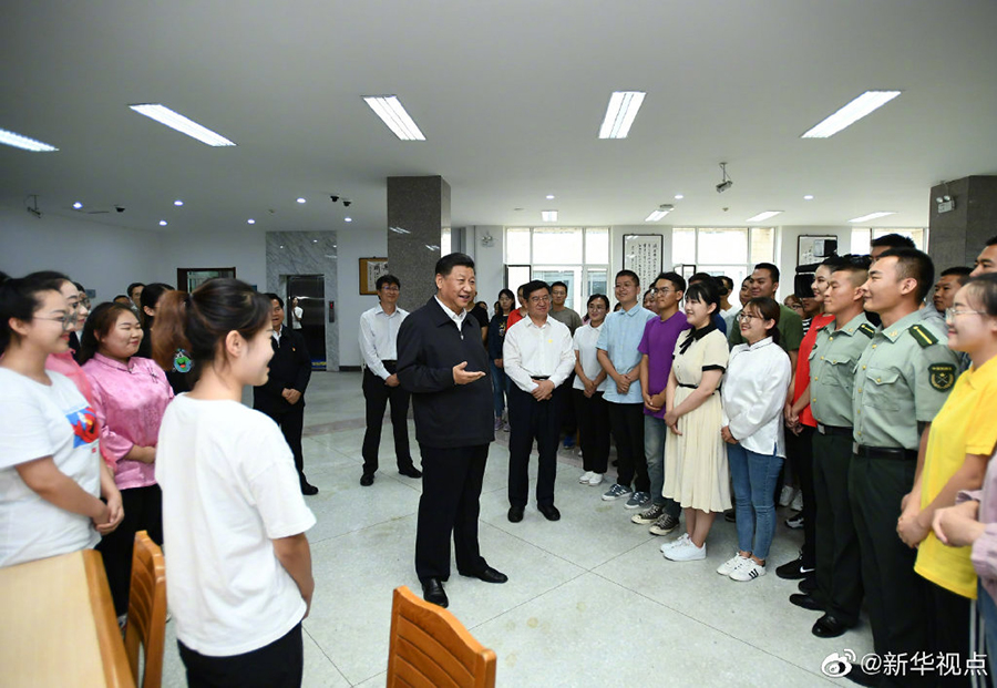 16日上午,正在內(nèi)蒙古考察調(diào)研的習(xí)近平總書記來到內(nèi)蒙古大學(xué),走進圖書館同學(xué)生們親切交談。習(xí)近平指出,少年強則中國強??吹侥昵嗳私】德斆鳌^發(fā)向上,充滿正能量,心里十分高興。長江后浪推前浪,青出于藍(lán)而勝于藍(lán),未來是屬于年青人的。在中華民族偉大復(fù)興的進程中,你們生逢其時,何其幸也。再過30年,到本世紀(jì)中葉實現(xiàn)第二個百年奮斗目標(biāo)的時候,你們正好是國家的骨干和棟梁。大家要志存高遠(yuǎn)、腳踏實地,學(xué)好知識,打好基礎(chǔ),增長才干,將來為中華民族偉大復(fù)興貢獻自己的智慧和力量。 (文字:張曉松、朱基釵 攝影:謝環(huán)馳、李學(xué)仁)