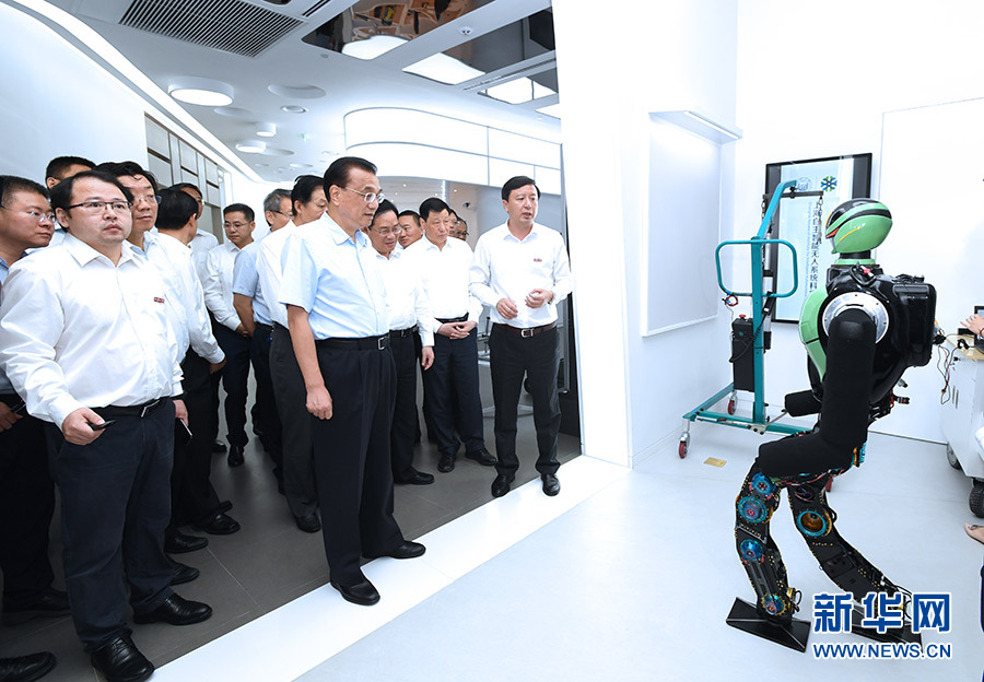 7月22日至23日,中共中央政治局常委、國務(wù)院總理李克強(qiáng)在上??疾臁_@是7月23日,李克強(qiáng)在上海張江人工智能島察看3D視覺遠(yuǎn)程醫(yī)療、智能神經(jīng)仿生、智能無人系列技術(shù)等創(chuàng)新成果。 新華社記者 饒愛民 攝