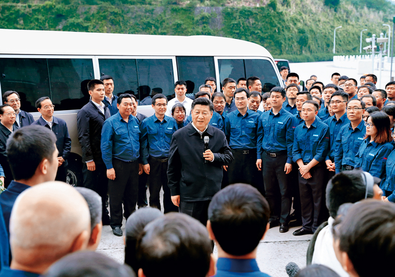 2018年4月26日下午,中共中央總書記、國(guó)家主席、中央軍委主席習(xí)近平在武漢主持召開深入推動(dòng)長(zhǎng)江經(jīng)濟(jì)帶發(fā)展座談會(huì)并發(fā)表重要講話。這是座談會(huì)前,習(xí)近平于24日下午在三峽大壩左岸電站考察。 新華社記者 謝環(huán)馳/攝