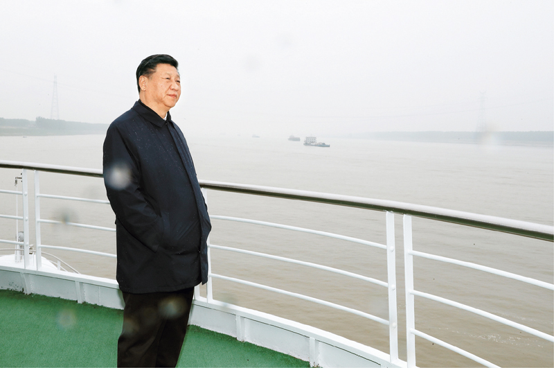 2018年4月26日下午,中共中央總書記、國(guó)家主席、中央軍委主席習(xí)近平在武漢主持召開深入推動(dòng)長(zhǎng)江經(jīng)濟(jì)帶發(fā)展座談會(huì)并發(fā)表重要講話。這是座談會(huì)前,習(xí)近平于25日上午乘船沿江察看兩岸生態(tài)環(huán)境和發(fā)展建設(shè)情況。 新華社記者 謝環(huán)馳/攝