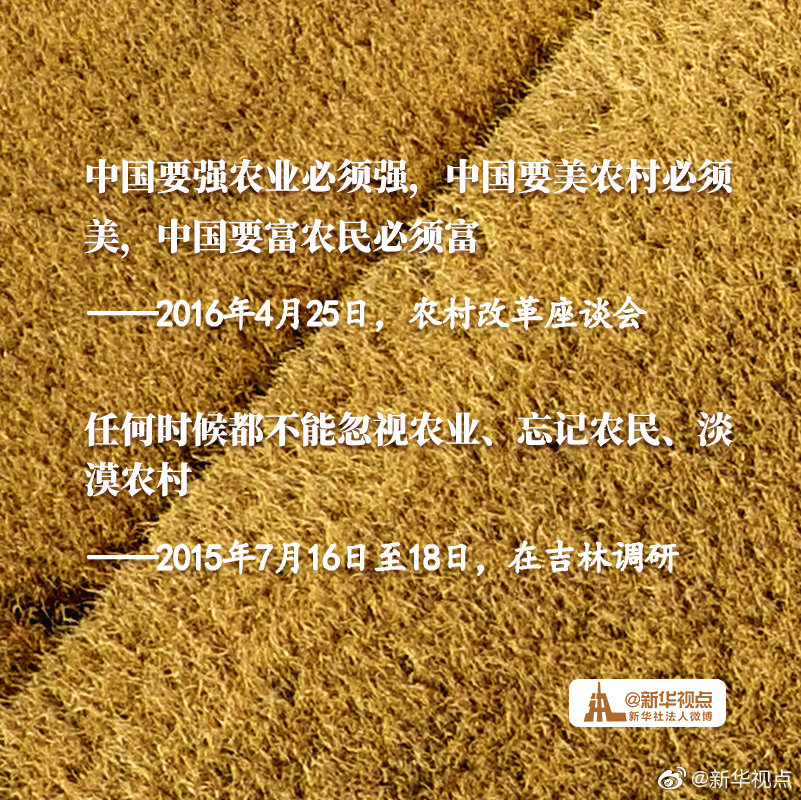 “農(nóng)業(yè)農(nóng)村工作,說一千、道一萬,增加農(nóng)民收入是關(guān)鍵”“中國要強農(nóng)業(yè)必須強,中國要美農(nóng)村必須美,中國要富農(nóng)民必須富”……黨的十八大以來,以習近平同志為核心的黨中央關(guān)注農(nóng)業(yè)、關(guān)心農(nóng)村、關(guān)愛農(nóng)民,一起來學習總書記的金句? ????