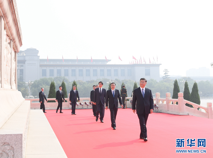 9月30日上午,習(xí)近平、李克強(qiáng)、栗戰(zhàn)書(shū)、汪洋、王滬寧、趙樂(lè)際、韓正、王岐山等黨和國(guó)家領(lǐng)導(dǎo)人來(lái)到北京天安門(mén)廣場(chǎng),出席烈士紀(jì)念日向人民英雄敬獻(xiàn)花籃儀式。 新華社記者 申宏 攝