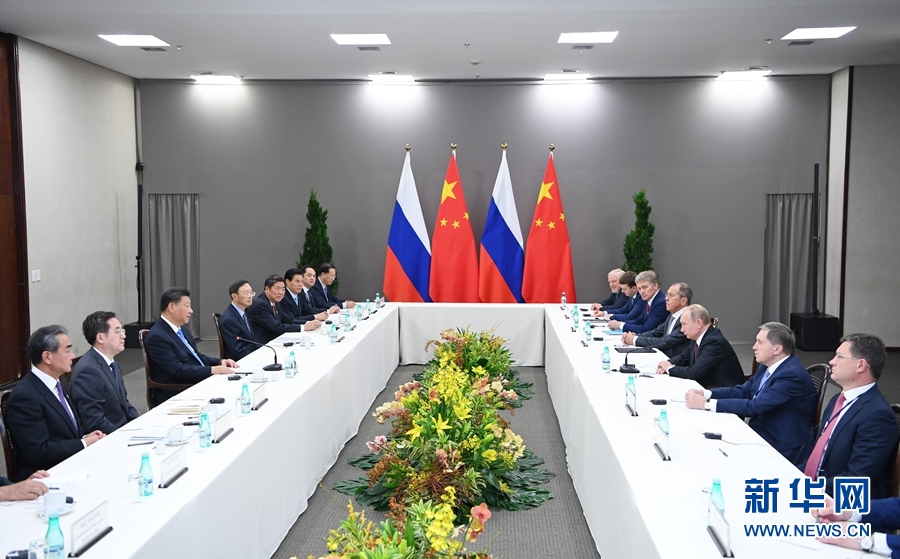 當(dāng)?shù)貢r(shí)間11月13日,國家主席習(xí)近平在巴西利亞會(huì)見俄羅斯總統(tǒng)普京。 新華社記者 張領(lǐng) 攝