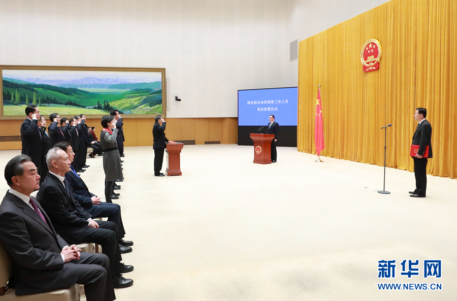 根據(jù)《中華人民共和國憲法》和《國務(wù)院及其各部門任命的國家工作人員憲法宣誓組織辦法》,2019年7月至11月國務(wù)院任命的14個部門和單位的16名負責人依法進行憲法宣誓。