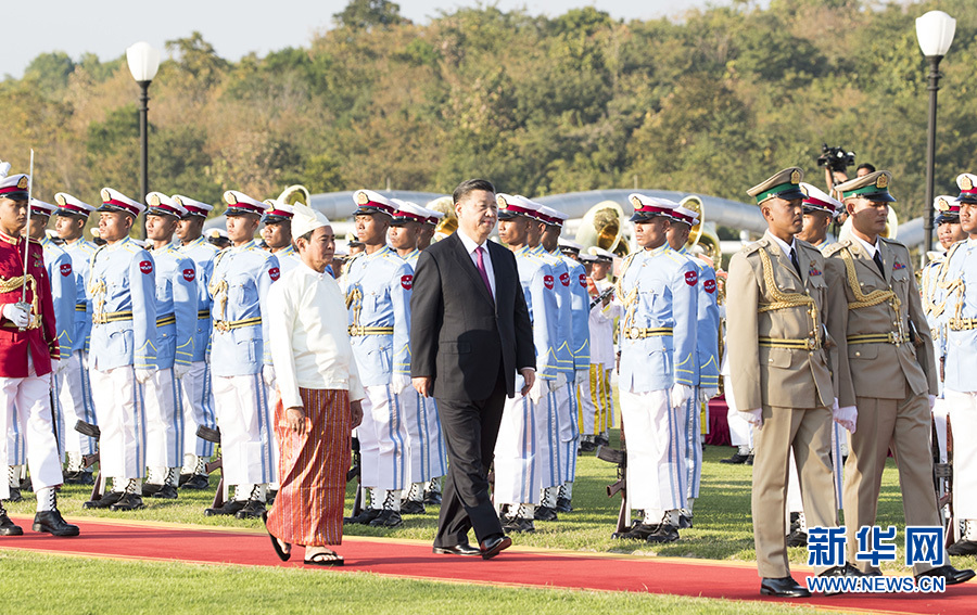 新華社內(nèi)比都1月17日電(記者蔣國鵬)當(dāng)?shù)貢r間1月17日下午,國家主席習(xí)近平在內(nèi)比都總統(tǒng)府出席緬甸總統(tǒng)溫敏舉行的隆重歡迎儀式。