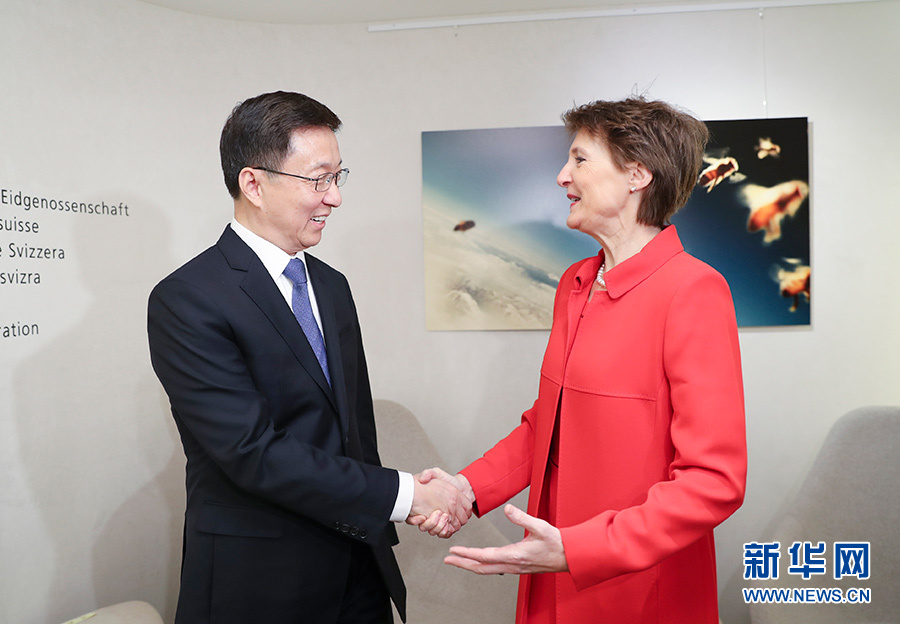1月20日至21日,應(yīng)瑞士聯(lián)邦副主席帕姆蘭邀請,中共中央政治局常委、國務(wù)院副總理韓正訪問瑞士。這是1月21日,韓正會見瑞士聯(lián)邦主席索馬魯加。 新華社記者 丁海濤 攝