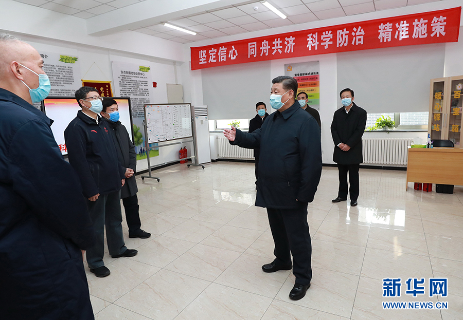 習近平首先來到北京市朝陽區(qū)安貞街道安華里社區(qū),了解基層一線疫情聯防聯控情況。在社區(qū)居民委員會疫情防控指揮部,習近平聽取了安貞街道和安華里社區(qū)開展聯防聯控情況介紹。習近平對社區(qū)采取多項措施,落實防控責任,實現入戶排查、重點群體監(jiān)控“兩個全覆蓋”等做法表示肯定。他強調,社區(qū)是疫情聯防聯控的第一線,也是外防輸入、內防擴散最有效的防線。把社區(qū)這道防線守住,就能有效切斷疫情擴散蔓延的渠道。全國都要充分發(fā)揮社區(qū)在疫情防控中的阻擊作用,把防控力量向社區(qū)下沉,加強社區(qū)各項防控措施的落實,使所有社區(qū)成為疫情防控的堅強堡壘。要以疫情防控工作成效來檢驗和拓展“不忘初心、牢記使命”主題教育成果,發(fā)揮基層黨組織政治引領作用和黨員先鋒模范作用,把社區(qū)居民發(fā)動起來,構筑起疫情防控的人民防線。