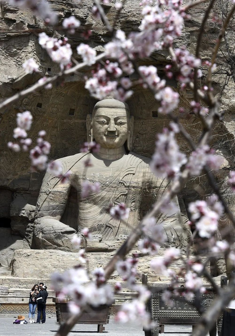 云岡石窟景區(qū)第二十窟的釋迦坐像(新華社記者王頌 攝)