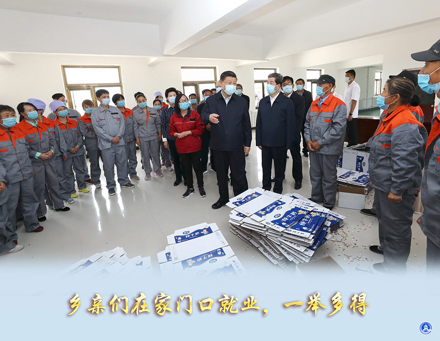 在村里,習(xí)近平總書記特地考察了扶貧車間:“不是搬過來蓋幾間漂亮房子就行了。鄉(xiāng)親們搬出來后,要穩(wěn)得住、能致富,才能扎下根?!?/p>