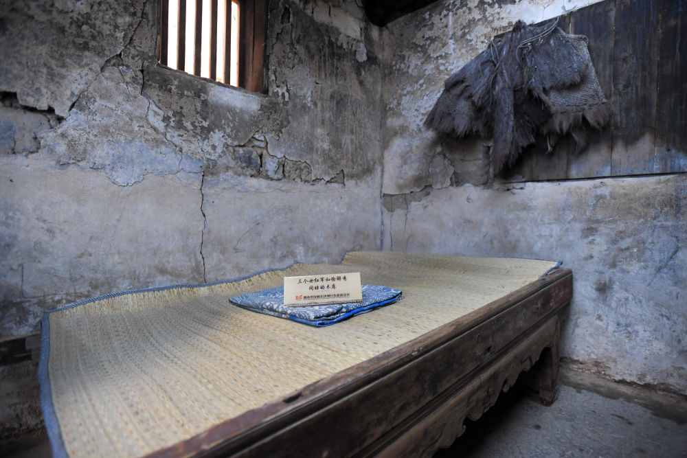 “在湖南汝城縣沙洲村,3名女紅軍借宿徐解秀老人家中,臨走時(shí),把自己僅有的一床被子剪下一半給老人留下了?!?/p>