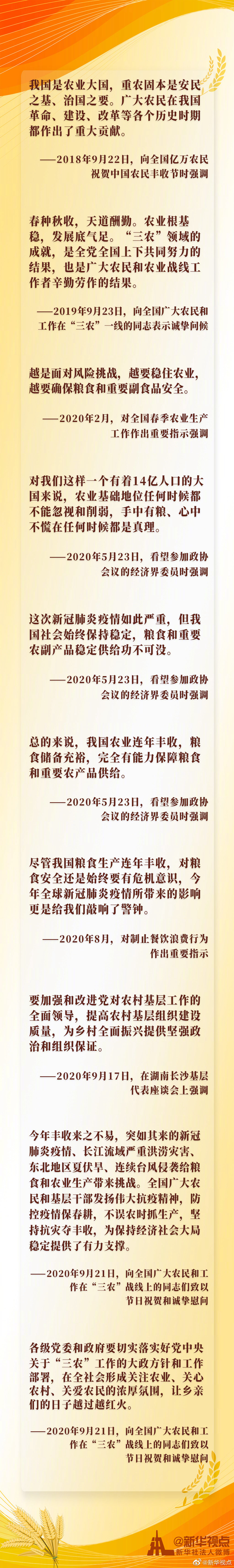 春種秋收,天道酬勤。今天是第三個(gè)中國(guó)農(nóng)民豐收節(jié),一起重溫習(xí)近平總書記關(guān)注農(nóng)業(yè),關(guān)心農(nóng)村,關(guān)愛農(nóng)民的金句。