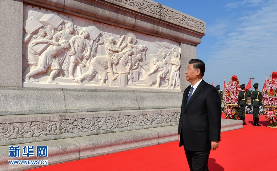 9月30日上午,黨和國家領(lǐng)導人習近平、李克強、栗戰(zhàn)書、汪洋、王滬寧、趙樂際、韓正、王岐山等來到北京天安門廣場,出席烈士紀念日向人民英雄敬獻花籃儀式。這是習近平瞻仰人民英雄紀念碑。 新華社記者 岳月偉 攝