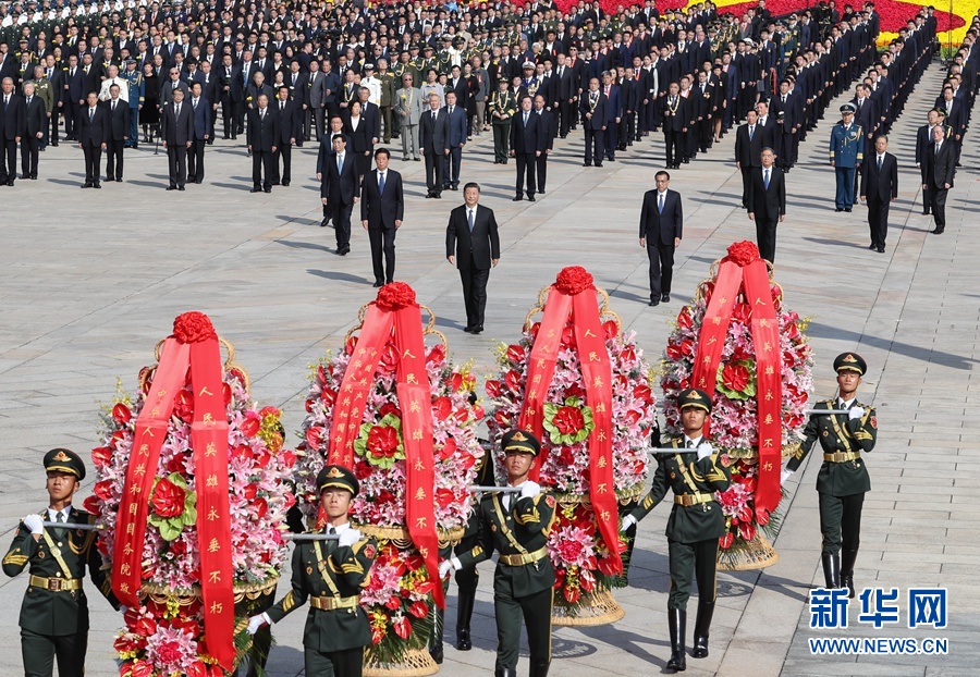 新華社北京9月30日電 緬懷革命先烈,弘揚英雄精神。烈士紀念日向人民英雄敬獻花籃儀式30日上午在北京天安門廣場隆重舉行。黨和國家領(lǐng)導人習近平、李克強、栗戰(zhàn)書、汪洋、王滬寧、趙樂際、韓正、王岐山等,同各界代表一起出席儀式。