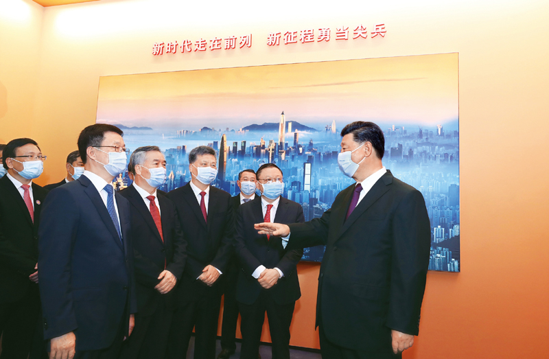 2020年10月14日,深圳經濟特區(qū)建立40周年慶祝大會在廣東省深圳市隆重舉行。中共中央總書記、國家主席、中央軍委主席習近平在會上發(fā)表重要講話。這是當天上午,習近平等參觀“從先行先試到先行示范——慶祝深圳經濟特區(qū)建立40周年展覽”。 新華社記者 鞠鵬/攝