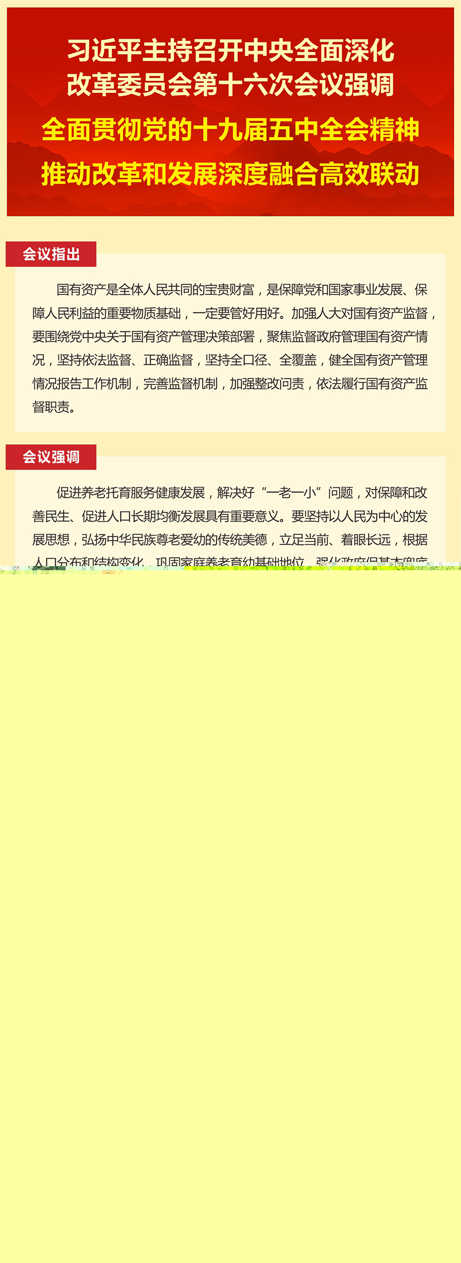新華社北京11月2日電? 中共中央總書記、國家主席、中央軍委主席、中央全面深化改革委員會(huì)主任習(xí)近平11月2日下午主持召開中央全面深化改革委員會(huì)第十六次會(huì)議并發(fā)表重要講話。他強(qiáng)調(diào),“十三五”以來,全面深化改革取得重大突破。“十四五”時(shí)期我國將進(jìn)入新發(fā)展階段,改革又到了一個(gè)新的關(guān)頭。貫徹黨的十九屆五中全會(huì)精神,要繼續(xù)把握好改革和發(fā)展的內(nèi)在聯(lián)系,深刻認(rèn)識(shí)我國社會(huì)主要矛盾變化帶來的新特征新要求,深刻認(rèn)識(shí)錯(cuò)綜復(fù)雜國際環(huán)境帶來的新矛盾新挑戰(zhàn),深刻認(rèn)識(shí)全面深化改革的階段性新特點(diǎn)新任務(wù),緊扣貫徹新發(fā)展理念、推進(jìn)高質(zhì)量發(fā)展、構(gòu)建新發(fā)展格局,緊盯解決突出問題,提高改革的戰(zhàn)略性、前瞻性、針對性,使改革更好對接發(fā)展所需、基層所盼、民心所向,推動(dòng)改革和發(fā)展深度融合、高效聯(lián)動(dòng)。