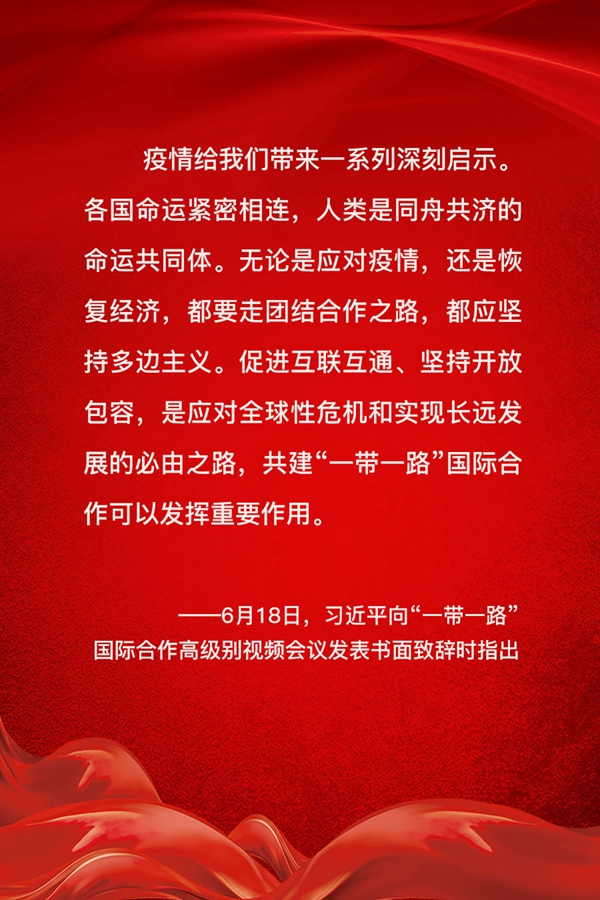 在當(dāng)前新冠肺炎疫情全球蔓延的特殊背景下,“一帶一路”國際合作高級(jí)別視頻會(huì)議的舉行,為進(jìn)一步加強(qiáng)抗疫國際合作和推動(dòng)高質(zhì)量共建“一帶一路”注入了新動(dòng)力,也為疫情陰霾中的世界提振了信心、凝聚了正能量。