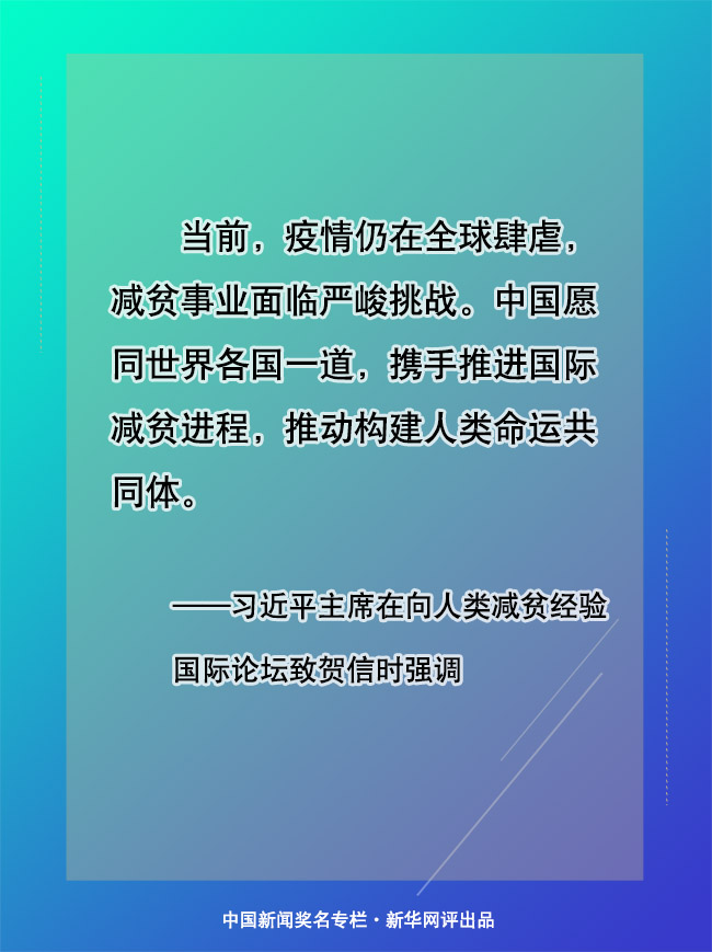 志行萬(wàn)里者,不中道而輟足。當(dāng)前,中國(guó)取得了脫貧攻堅(jiān)的重大勝利,將繼續(xù)鞏固和拓展成果,扎實(shí)推進(jìn)共同富裕,不斷提升民生福祉水平,同時(shí)將繼續(xù)助力全球減貧工作。國(guó)際社會(huì)只要把發(fā)展作為解決貧困的根本途徑,勠力同心、攜手共進(jìn),一定能為共建一個(gè)沒(méi)有貧困、共同發(fā)展的人類(lèi)命運(yùn)共同體注入更多信心力量。(文字:馬若虎 海報(bào):張倩)