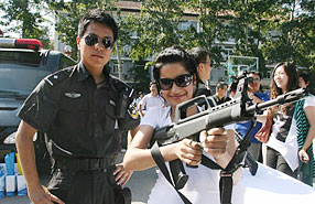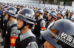 天津中小學(xué)開(kāi)學(xué) 校園保安帶4斤裝備上崗