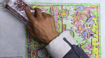 2月22日,在敦煌小镇鸣沙书院,来自甘肃的学员朱俊峰学习敦煌壁画临摹技艺。