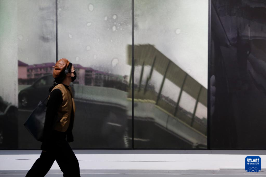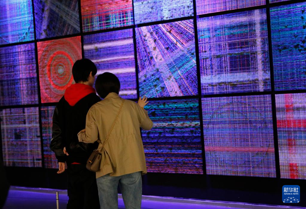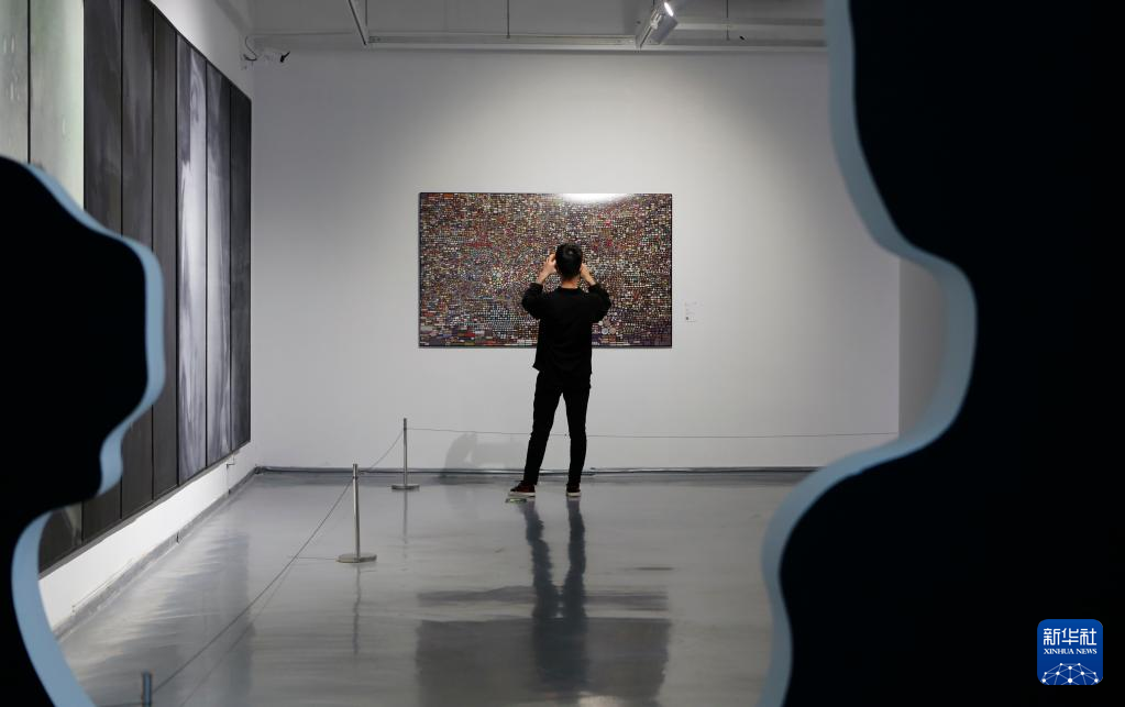 4月15日,观众在“2023第六届苏州·金鸡湖双年展”上参观拍摄艺术作品。