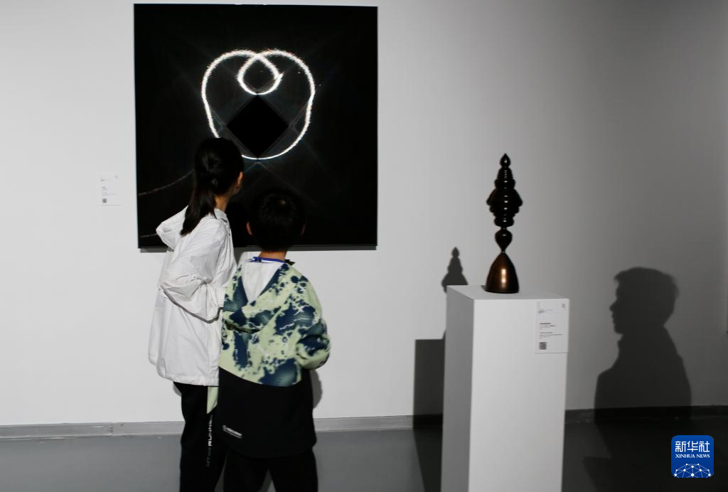 4月15日,观众在“2023第六届苏州·金鸡湖双年展”上参观艺术作品。