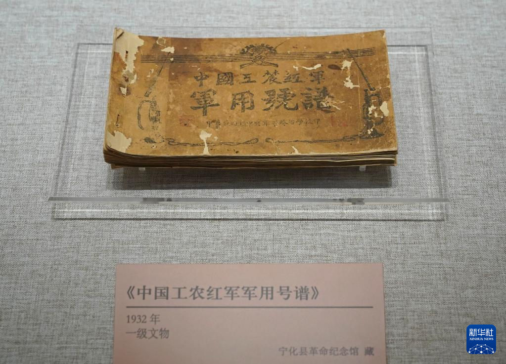 福建宁化县革命纪念馆的珍贵文物《中国工农红军军用号谱》亮相展览(4月17日摄)。