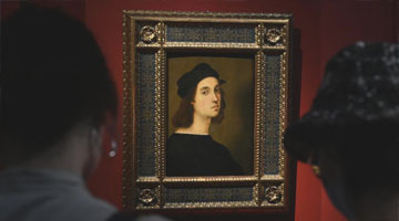 4月28日,嘉宾在北京故宫博物院观看唐代阎立本《步辇图》。