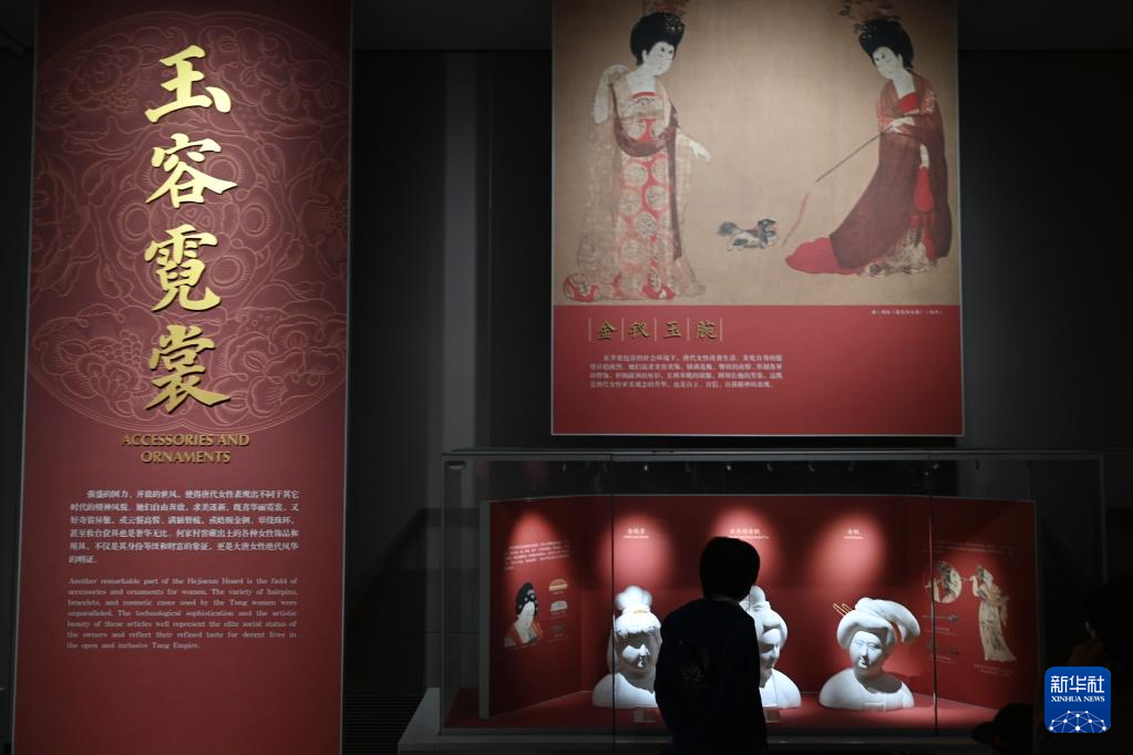游客在陕西历史博物馆“大唐遗宝——何家村窖藏出土文物展”上参观(2022年5月18日摄)。