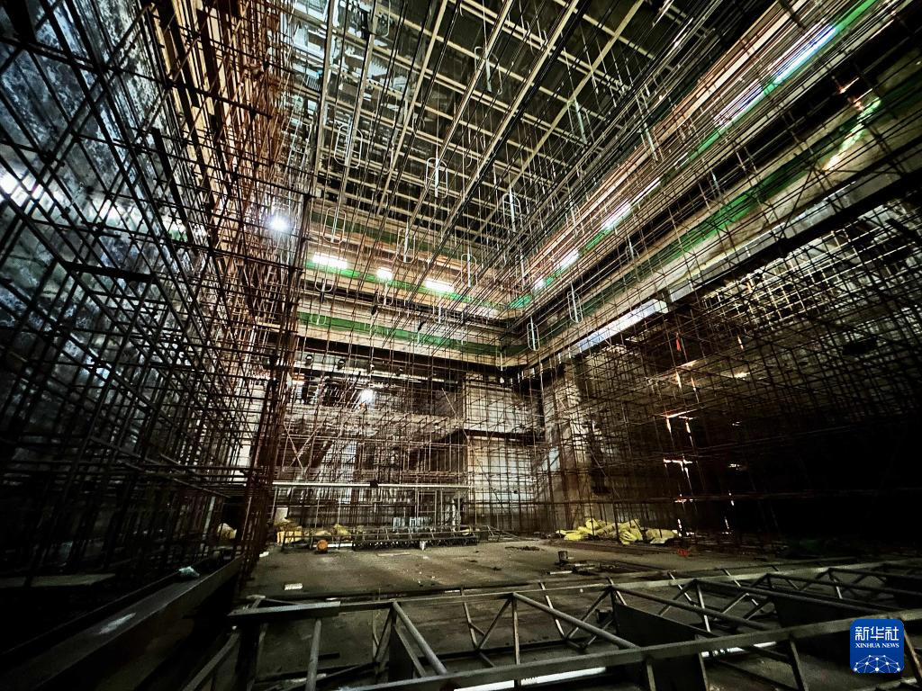 这是5月23日在刚果(金)首都金沙萨拍摄的由中国援建的中部非洲文化艺术中心项目施工现场。新华社记者 史彧 摄