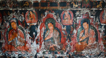 这是5月26日拍摄的皮央石窟壁画中的人物造型。