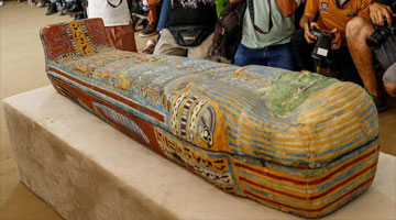 这是5月26日拍摄的皮央石窟壁画中的骷髅造型。