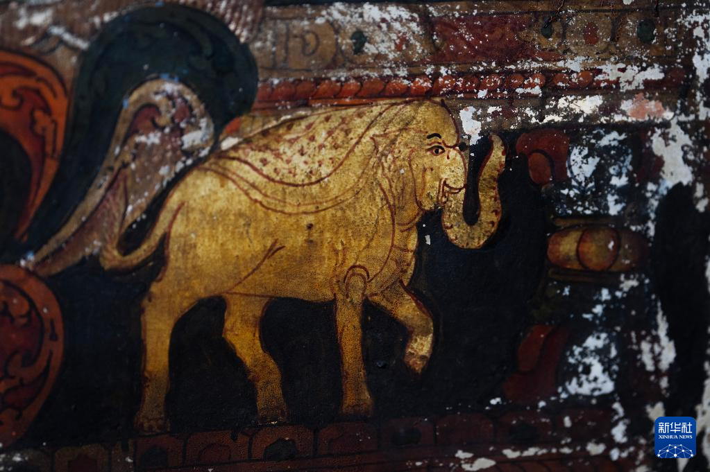 这是5月26日拍摄的皮央石窟壁画中的大象像。