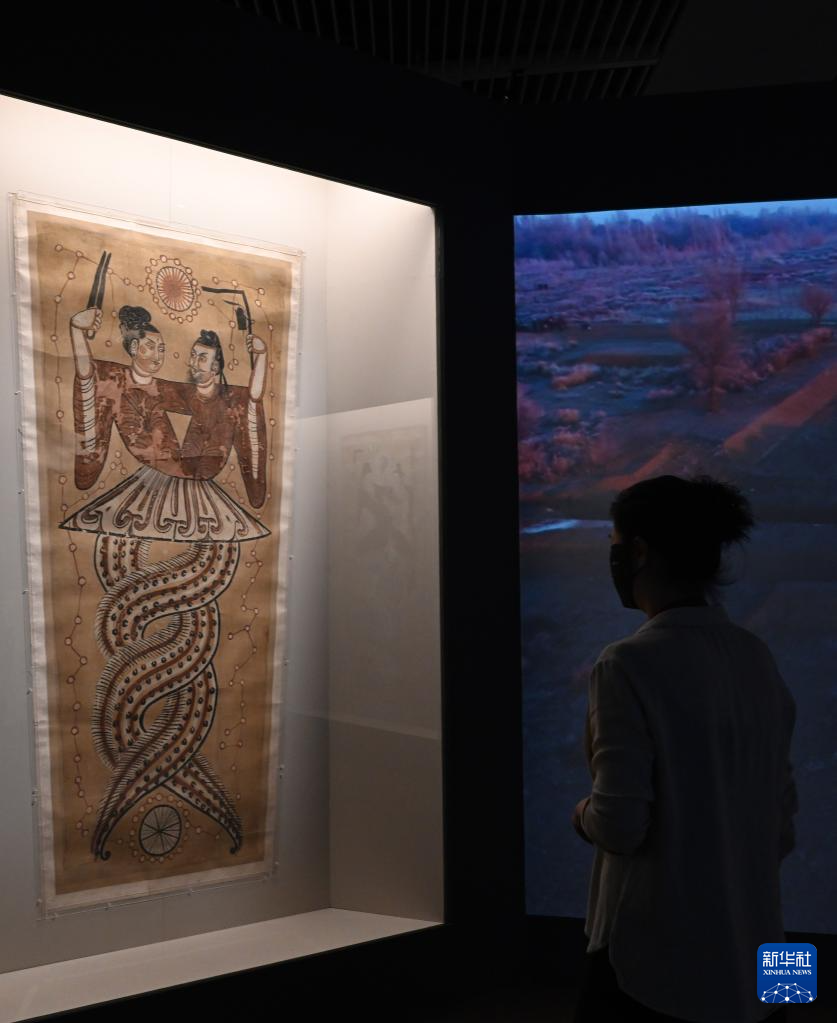 6月16日,观众参观伏羲女娲绢画。