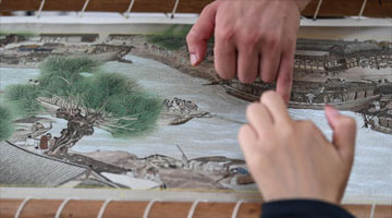 7月18日,山西运城,市民在参观明代万历年间的“河东盐池之图”刻石。河东池盐博物馆通过介绍盐池形成、盐业发展变迁等内容,集中展示盐文化发展历程。中新社记者 张云 摄