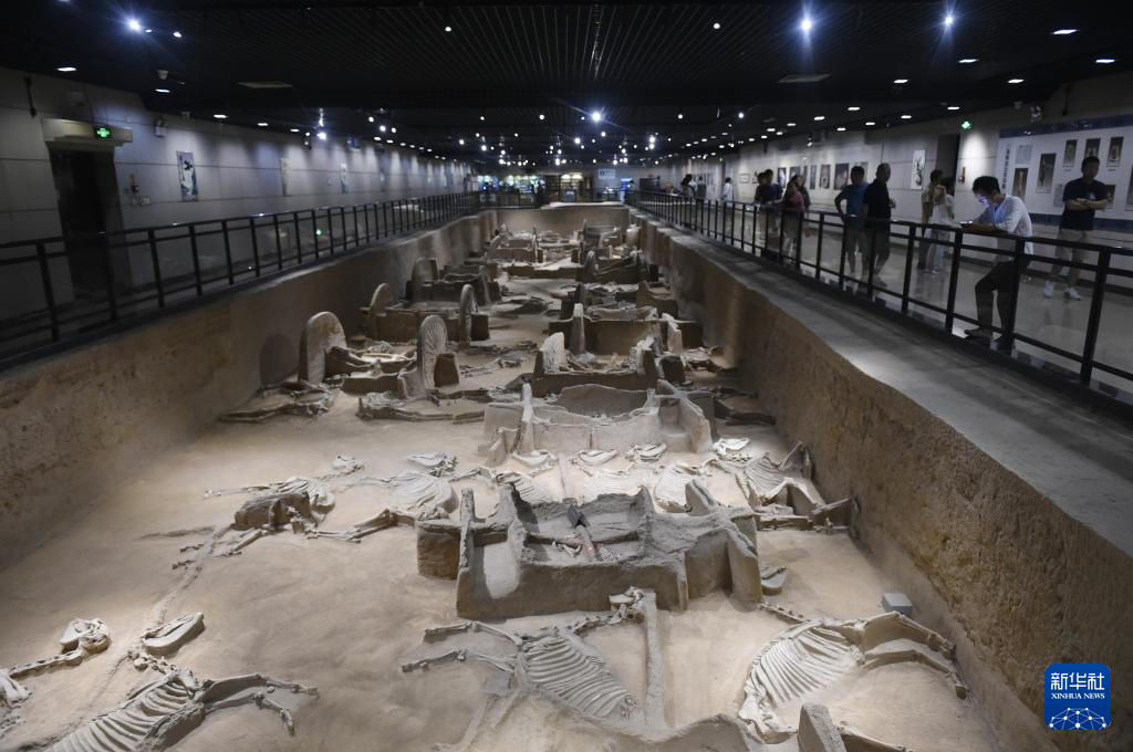7月20日,观众在洛阳周王城天子驾六博物馆内参观。