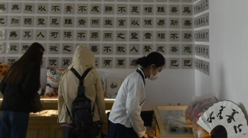 10月24日,艺人在甘肃省定西市临洮县洮砚艺术馆介绍一款洮砚的创作构想。