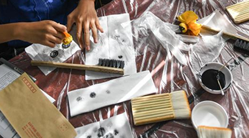 10月24日,艺人在甘肃省定西市临洮县洮砚艺术馆打磨洮砚。