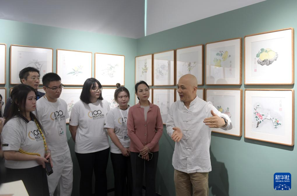 当日,十竹斋木版水印艺术作品展在暨南大学广州石牌校区举行。国家非遗项目木版水印技艺代表性传承人魏立中在展览现场为学生导赏、授课,并指导学生体验木版水印手作的乐趣。