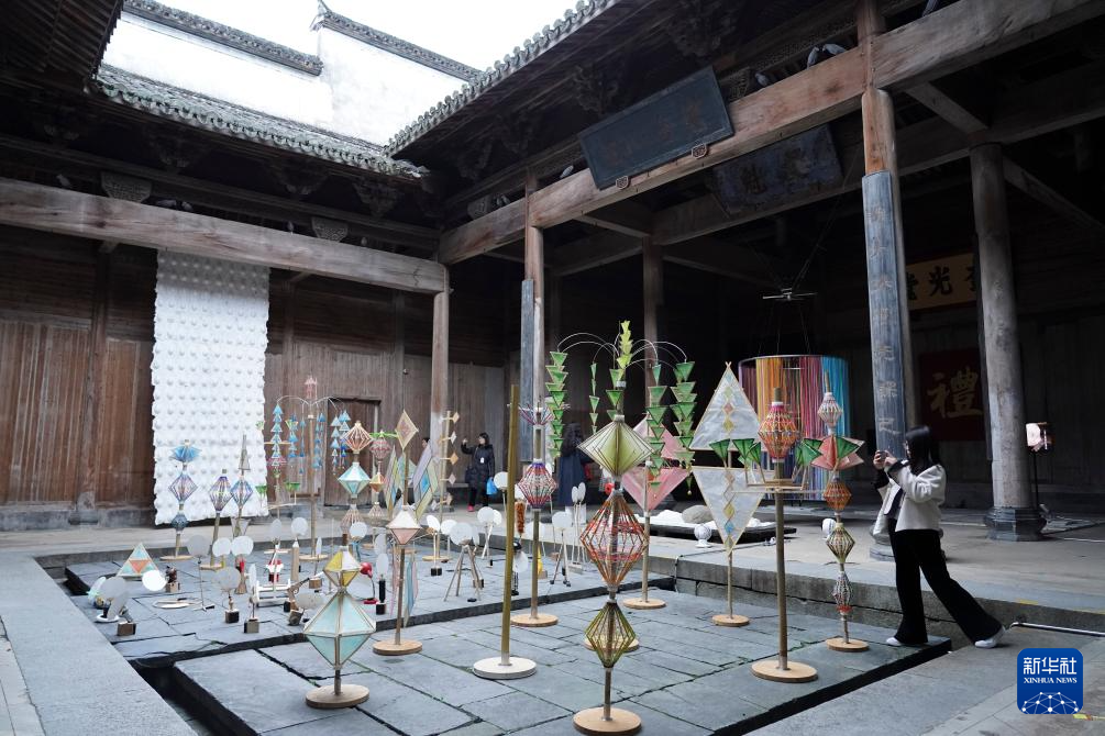 安徽黄山:古祠堂里的纸工艺展-新华网